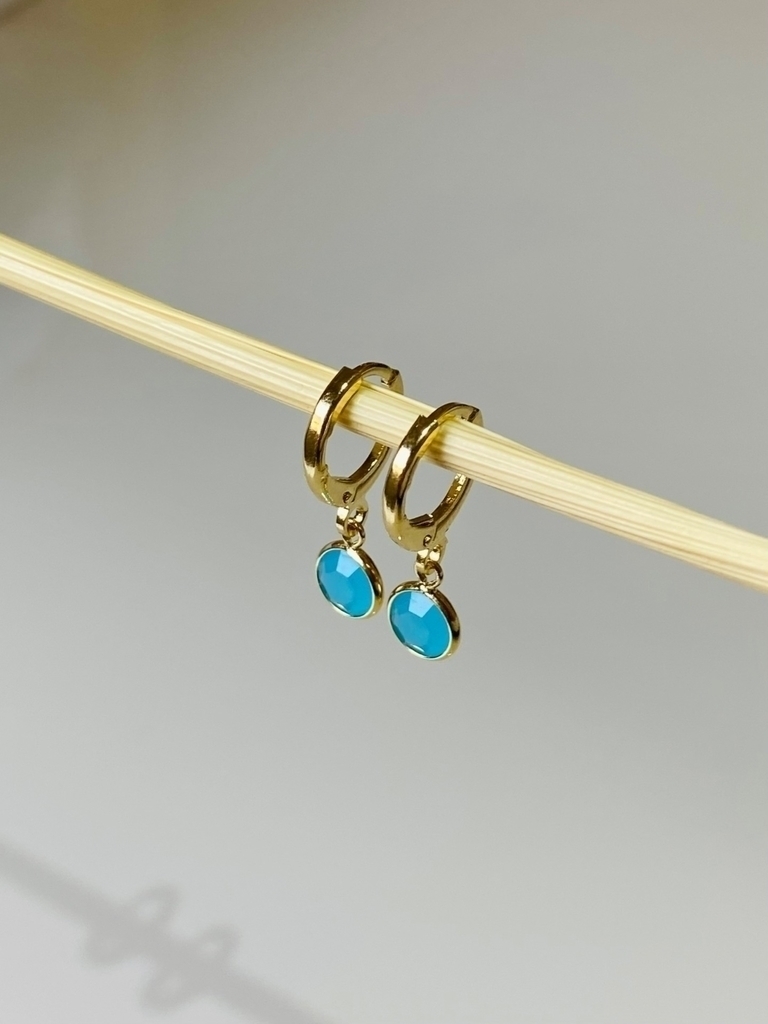 Argola dourada e banhada a ouro (folheado 18k). Possui fecho tipo argolinha excelente e super prático para fechar, detalhe de 1 pedra azul pendurada. Linda peça e pode ser usada em diversas ocasiões. Pode ser usado por crianças.