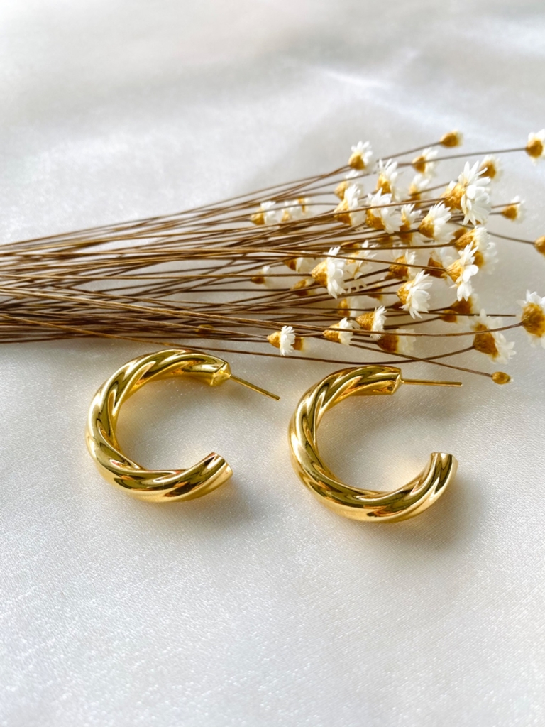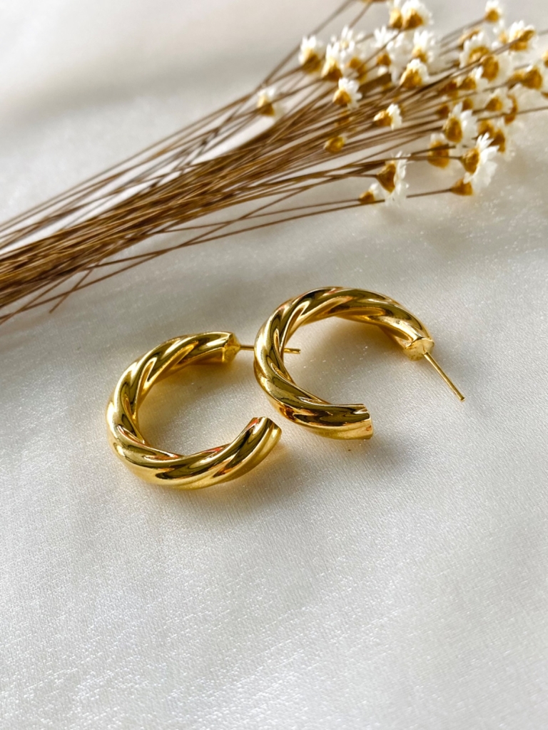 Brinco banhado a Ouro (18k). Argola retorcida.