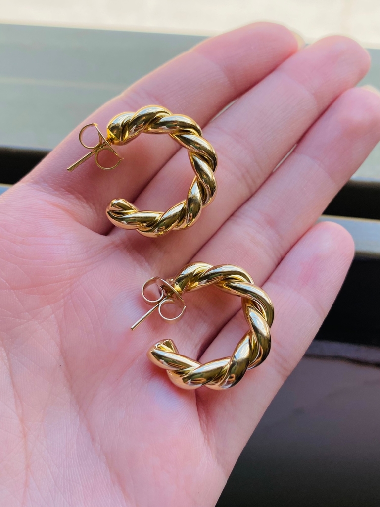 Brinco banhado a ouro. Linda peça com essa malha torcida. Possui garantia de 1 ano.